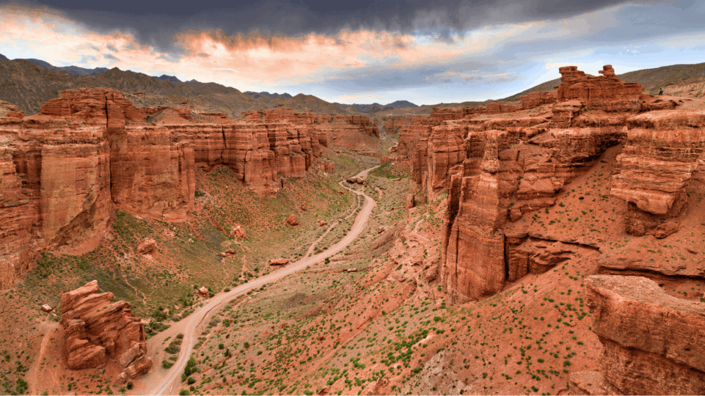 - チャリン渓谷: 「中央アジアのグランドキャニオン」と称される巨大な峡谷。数百万年の歳月が作り出した赤土の奇岩群が数キロにわたって続き、特に「精霊の谷(キャッスル・バレー)」と呼ばれるエリアは、火星に降り立ったかのような没入感を味わえます。